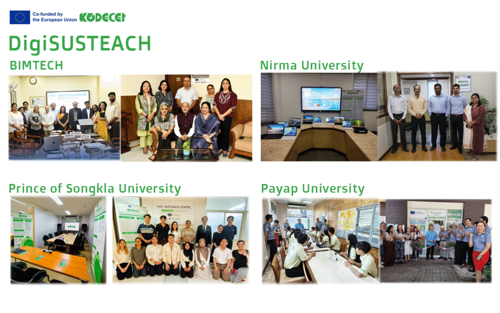 Asia: Universities in India and Thailand will gain access to cutting-edge SACE knowledge and resources through our four Digi-SUSTEACH centers. These centers will provide three comprehensive courses with open-source materials in booklet and video formats. Additionally, KODECET will train 20 faculty members, enroll over 120 students, and organize a HACKATHON with 80 participants to foster university-business collaboration. This knowledge will then be disseminated to other universities, colleges, and businesses, creating a lasting impact.